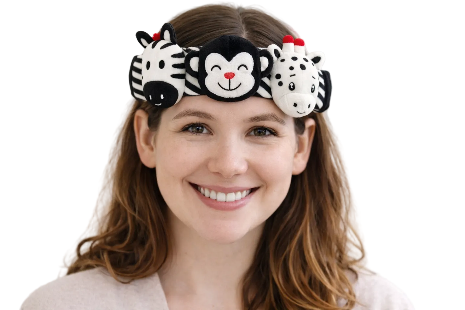Bring you baby's world into view with the Looky Baby™ Sensory Headband, a high-contrast sensory headband worn by parent or caregivers. Friendly plush animal faces are positioned right within your baby's visual field, helping capture their attention during everyday moments like feeding, tummy time, diaper changes, or cuddles on the cuddles.